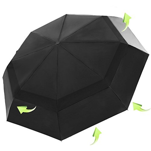 WINDPROOF & COLORFUL DOUBLE VENTED CANOPY - allows fierce wind to vent between layers, preventing this travel umbrella from flipping over and it's strongly wind resistant. Double layer canopy provides ultimate sun or rain protection. The black colored outer layer with colorful inner layer always boosts you up during a rainy day. It's the best gift to friends or families.