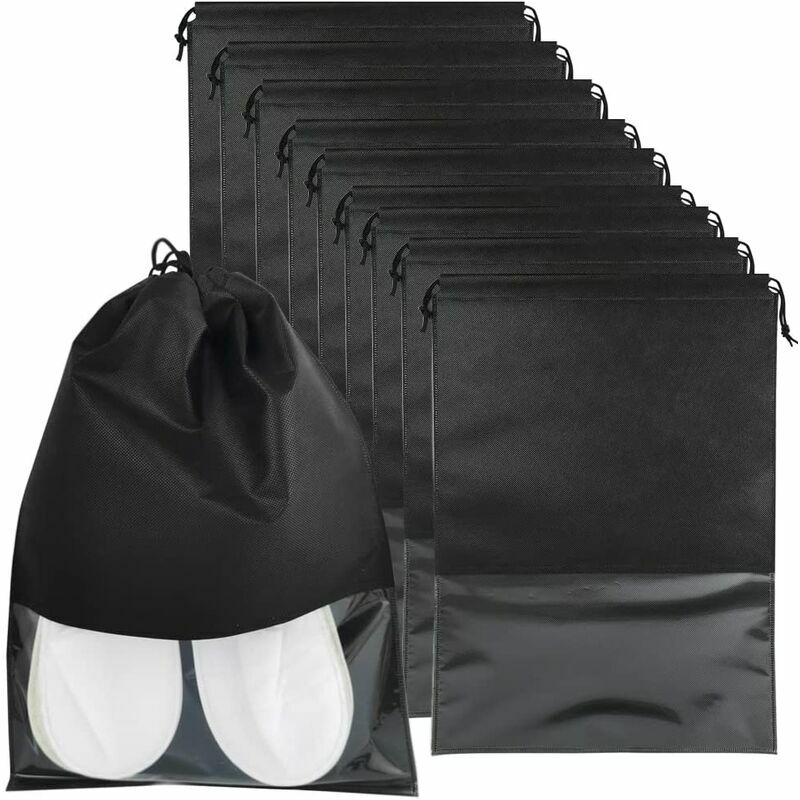 Borse con coulisse: queste borse per scarpe sono realizzate in tessuto non tessuto di alta qualità. Progettate con la coulisse sull'apertura della bocca, le borse possono contenere i tuoi oggetti essenziali ed evitare che cadano facilmente. Borsa con finestra trasparente: la parte anteriore della borsa per scarpe è realizzata in PVC. non è necessario aprire la borsa ogni volta per vedere quale paio di scarpe c'è dentro. Usi estesi: non solo per le scarpe, può essere utilizzato anche per giocattoli, articoli da toeletta, vestiti, cancelleria, cosmetici o quello che vuoi. Antipolvere e impermeabile: facile da aprire e spremere. Organizza e proteggi correttamente le tue scarpe con questa doppia coulisse di qualità, impermeabile, resistente e antipolvere, semplice, leggera, traspirante. Dimensioni perfette: 350 * 450 mm.Adatto a tutti i tipi e dimensioni di scarpe, come i tacchi alti, scarpe sportive, stivali, pantofole, scarpe per bambini, ecc. Antipolvere: Viene utilizzato per