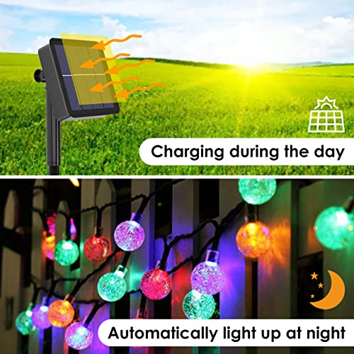Kolpop Catena Luminosa Esterno [2 Pezzi], 60LED Luce Stringa solari Lucine Led Decorative di Crystal Globe Impermeabile IP65 Catena Luminosa per Natale, Giardino, Matrimonio, Festa (Multicolore)