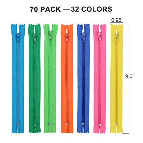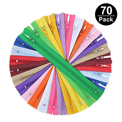 Komake [70 pezzi] Chiusura lampo in nylon 30 colori, lunghezza 20 cm, larghezza 2,5 cm, per vestiti, borse, astucci