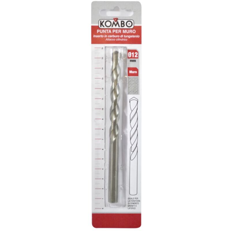 Punta trapano per muro 12 x 150 inserto carburo di tungstenio sabbiata attacco cilindrico