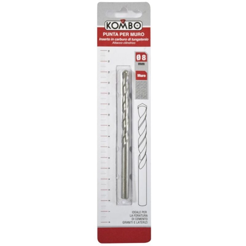 Punta trapano per muro 8 x 120 inserto carburo di tungstenio sabbiata attacco cilindrico