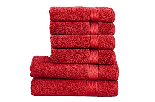 Komfortec set di 6 asciugamani | 4 asciugamani 50x100 cm e 2 asciugamani 70x140 cm | Telo da bagno in spugna e telo doccia XXL | 100% cotone - morbido | Asciugatura rapida | Rosso Bordeaux