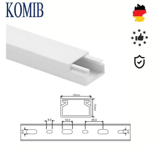 KOMIB Canale per cavi/canali/passacavi, diverse dimensioni/bianco puro (RAL 9010), bianco, avvitabile (con foro di montaggio sul pavimento), per asta 2 m (6 x 2 m = 12 m, 20 x 10 mm)