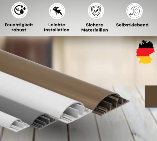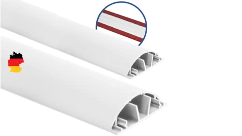 KOMIB - 2 canali da pavimento semicircolari da 1 m, alloggiamento per cavi LAN/autoadesivi e pronti per il montaggio (70 x 20 mm, bianco/bianco puro -RAL 9010)