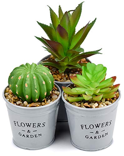 Komoyo 3 pezzi di piante artificiali, mini piante finte realistiche piante grasse finte in vaso di ferro per centrotavola da tavolo, varie forme decorative di piante grasse per davanzale da interno
