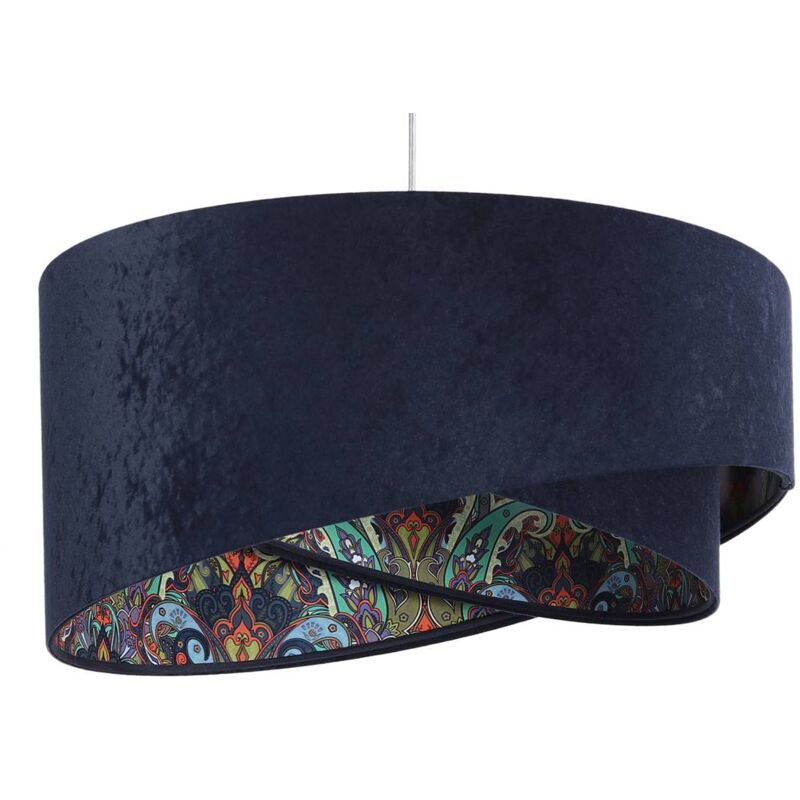Altezza paralume: 230, diametro: 500 Peso in kg: 1,3 Tipo di lampadina/attacco: E27 Lampadina inclusa: NO (compatibile con lampade LED e a risparmio energetico) Potenza massima in watt: max.1X60W Grado di protezione: IP20 Dimmerabile: SI Materiale vetro/paralume: Tessuto in velluto su PVC con stampa eco-lattice Colore vetro/paralume: blu scuro, multicolore Informazioni aggiuntive: Cavo trasparente 80 cm