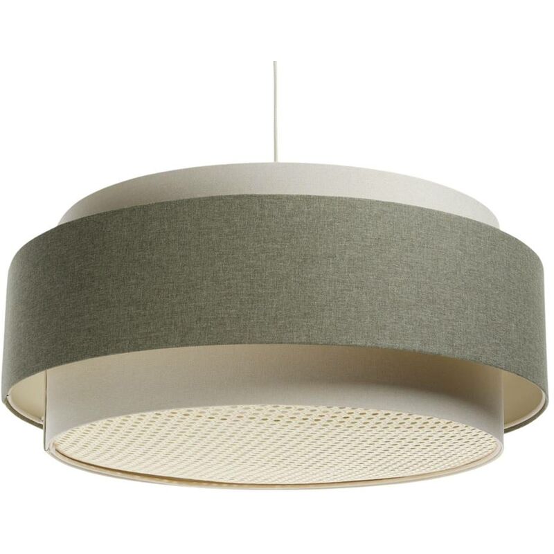 Lampada sospesa boho elegante E27 1x40w tessuto strutturato su plastica in PVC, con diffusore di rattan bianco, grigio H: 95 cm Ø60 cm Dimmessibile Dimensioni in mm: Altezza: 950;