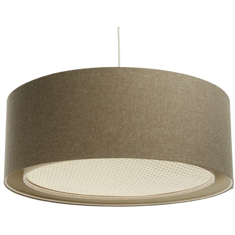 Lampada sospesa boho elegante E27 1x40w tessuto strutturato su plastica in PVC, con diffusore di diffusore di rattan, crema H: 90 cm Ø40 cm Dimmessibile in MM: Altezza: 900;