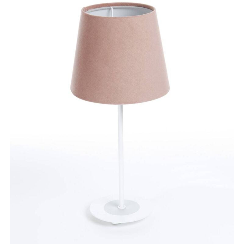 Lampada da tavolo JASMIN BEBE E27 max.1X60W tessuto velour jasmine rosa cipria su plastica PP, interno grigio chiaro H: 40 cm Ø18cm con interruttore a scorrimento Dimensioni in mm: Altezza: Altezza totale: 400, altezza paralume: 150, diametro paralume: superiore 130, inferiore 180 Peso in kg: 0,53 Tipo di lampadina/attacco: E27 Lampadine incluse: NO (compatibile con lampade a LED e a risparmio energetico) Potenza massima in watt: max. 1X60W Grado di protezione: IP20 Dimmerabile: NO Interruttore: SI Materiale alloggiamento: metallo Colore alloggiamento: bianco, beige Materiale vetro/paralume: tessuto in velluto Jasmine su plastica PP Colore vetro/paralume: rosa cipria, grigio chiaro Informazioni aggiuntive: Cavo di alimentazione trasparente 185 cm, con interruttore a scorrimento