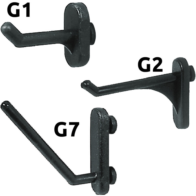 GANCIO IN NYLON PER PANNELLI PORTAUTENSILI G2 - pz 10 In blister. Modello:G2 - pz 10 Codice Prodotto:DFL=050602 Marca:KONCRETO Con Codice EAN: Altre Foto: KONCRETO