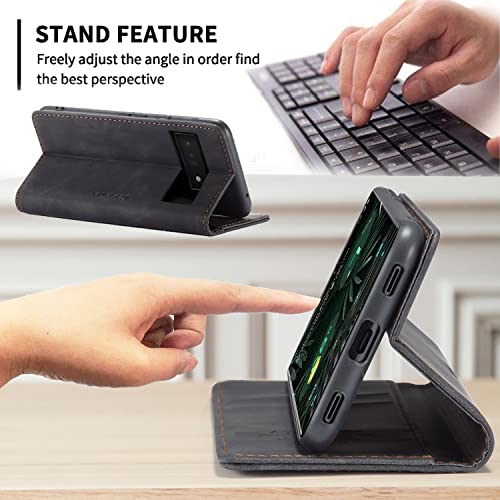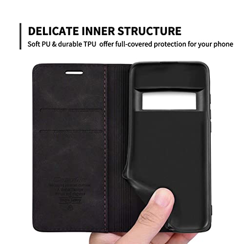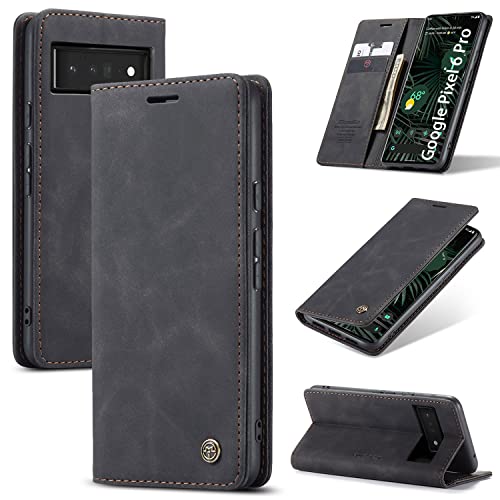 KONEE Custodia Compatibile con Google Pixel 6 Pro, Pelle Premium Magnetica Flip Custodia [Slot per schede] [Funzione Stand] Antiurto Portafoglio PU Cover per Google Pixel 6 Pro - Nero