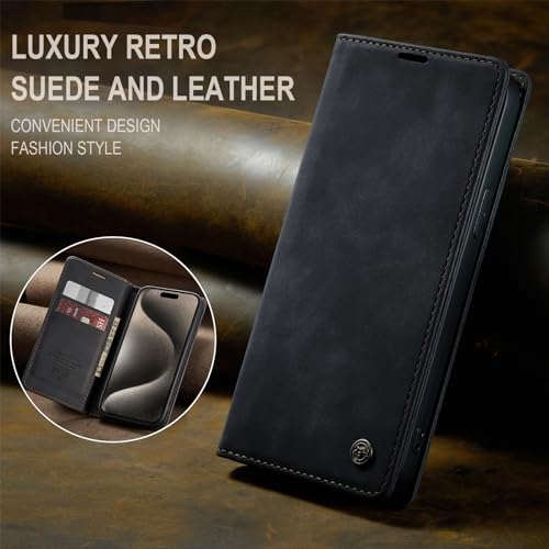 KONEE Custodia Compatibile con iPhone 15 Pro Max, Pelle Premium Magnetica Flip Custodia [Slot per schede] [Funzione Stand] Antiurto Portafoglio PU Cover per iPhone 15 Pro Max - Nero