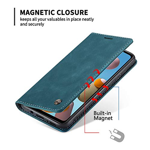 KONEE Custodia Compatibile con Samsung Galaxy A21s, Pelle Premium Magnetica Flip Custodia [Slot per schede] [Funzione Stand] Antiurto Portafoglio PU Cover per Samsung Galaxy A21s - Blu-Verde