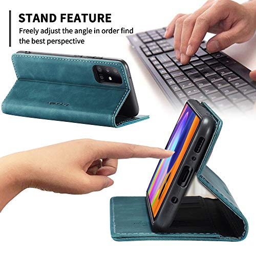 KONEE Custodia Compatibile con Samsung Galaxy A31, Pelle Premium Magnetica Flip Custodia [Slot per schede] [Funzione Stand] Antiurto Portafoglio PU Cover per Samsung Galaxy A31 - Blu-Verde