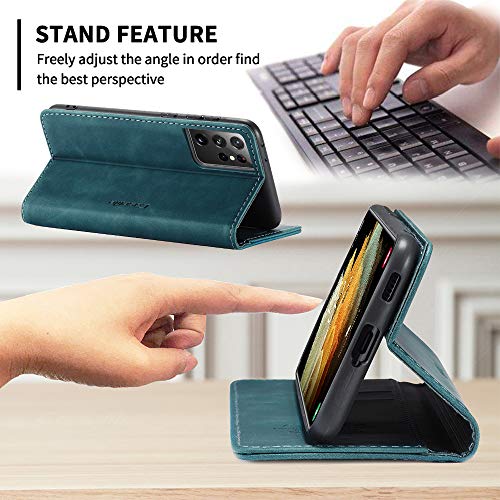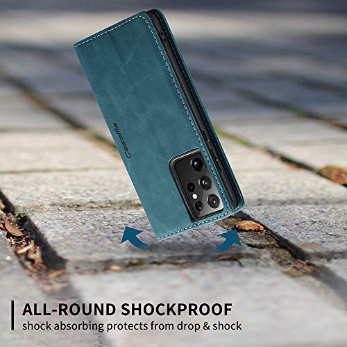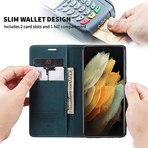 KONEE Custodia Compatibile con Samsung Galaxy S21 Ultra, Pelle Premium Magnetica Flip Custodia [Slot per schede] Antiurto Portafoglio PU Cover per Samsung Galaxy S21 Ultra 5G - Blu-Verde