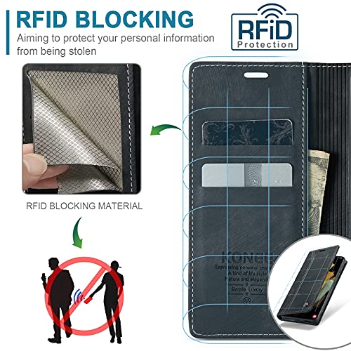 KONEE Custodia Compatibile con Samsung Galaxy S21 Ultra, [Slot per schede] [Funzione Stand] Pelle Premium Magnetica Flip Antiurto Portafoglio PU Cover per Samsung Galaxy S21 Ultra 5G - Nero