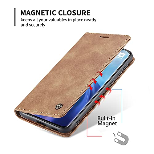 KONEE Custodia Compatibile con Xiaomi Mi 11, Pelle Premium Magnetica Flip Custodia [Slot per schede] Antiurto Portafoglio PU Cover per Xiaomi Mi 11 - Marrone