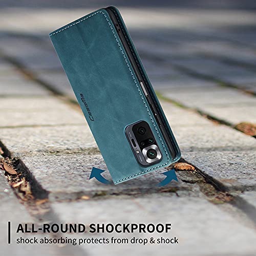 KONEE Custodia Compatibile con Xiaomi Redmi Note 10 Pro, Pelle Premium Magnetica Flip Custodia [Slot per schede] Antiurto Portafoglio PU Cover per Xiaomi Redmi Note 10 Pro - Blu-verde
