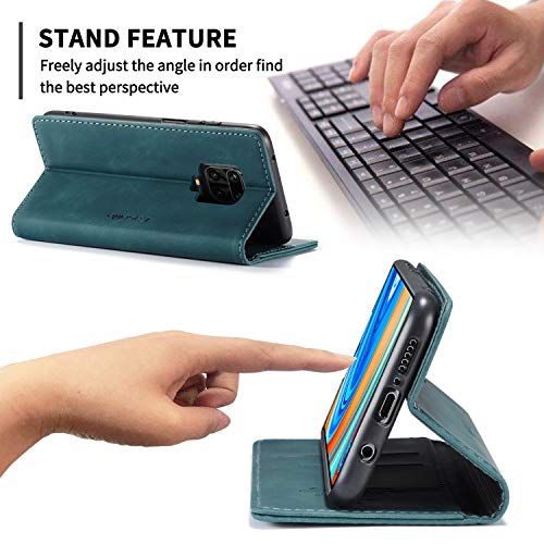 KONEE Custodia Compatibile con Xiaomi Redmi Note 9S / 9 Pro / 9 Pro Max, Pelle Premium Magnetica Flip Custodia[Slot per schede]Portafoglio Cover per Xiaomi Redmi Note 9S/ 9 Pro/ 9 Pro Max - Blu-verde