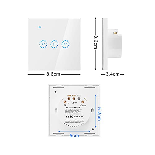 Konesky Interruttore a rullo per tenda intelligente Interruttore per tenda elettrica senza fili Wifi Interruttore a muro per comando a sfioramento con timer Alexa Home page di Google (Bianca)