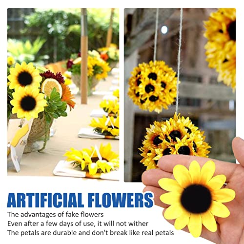KongJies, Decorazione floreale a forma di girasole, artificiale, 50 pezzi, giallo