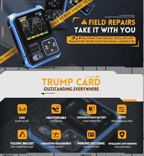 FNIRSI DSO-TC3 combines a digital oscilloscope, electronic component tester, signal generator, continuity test, voltage test, temperature and humidity measurement, infrared decoding, and other functions that are skillfully integrated.
