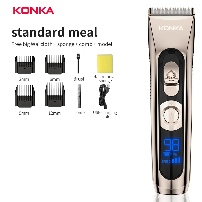 KONKA Hair Clipper Personal Electric Trimmer Men's Rechargeable Strong Power Steel Cutter Head With LED Screen Washable