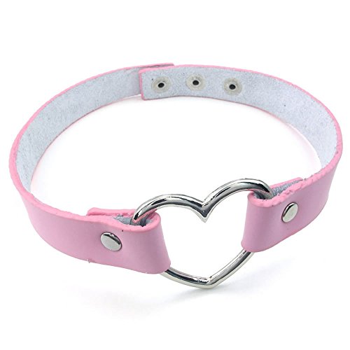 KONOV, choker da donna in pelle e lega metallica, motivo: cuore, colore: argento e rosa, larghezza 40 mm, lunghezza regolabile 36-40 cm