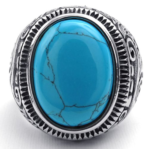 KONOV Gioielli Anello da Uomo, Anelli, Classico Retro, Acciaio Inossidabile, Azzurro Argento - 25 (con Borsa Regalo)