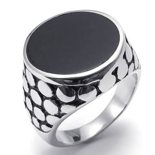 KONOV Gioielli Anello da Uomo, Anelli, Sigillo Stile Retro, Gotico, Acciaio Inossidabile, Nero Argento - 17 (con Borsa Regalo)