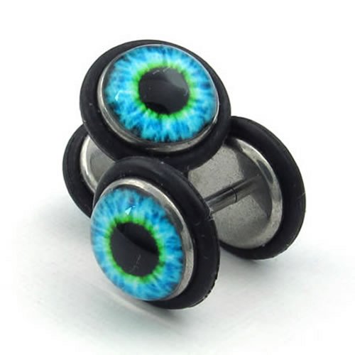 KONOV Gioielli Orecchini da Uomo, Devil, Diavolo, Demonio Occhio Orecchini a Lobo, Acciaio Inossidabile, Azzurro Nero (con Borsa Regalo)