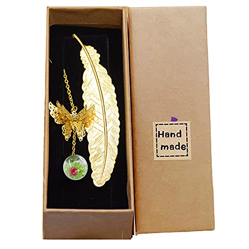 Konrisa Segnalibri con piume in metallo per donna Segnalibri con perline con pendente a farfalla Amanti del libro Regalo per bambini Adulti