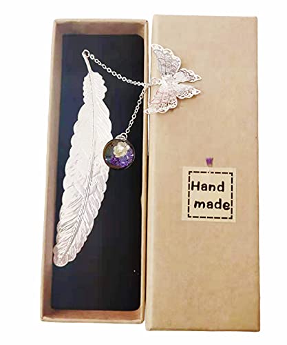 Konrisa Segnalibri con piume in metallo per donna Uomo Segnalibri con perline personalizzati con ciondoli a farfalla 3D per ragazze Lettori per bambini Appassionati di libri Insegnanti