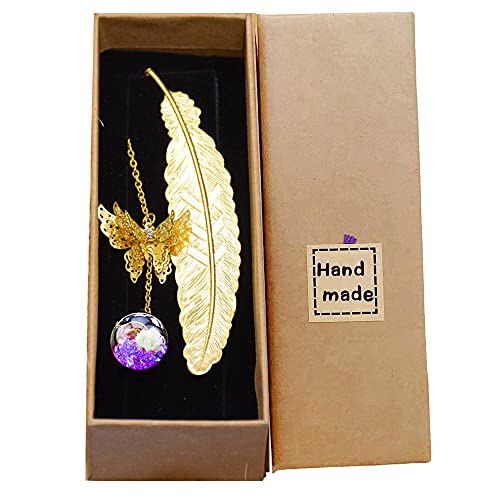 Konrisa - Segnalibro in metallo con piume, con ciondolo a forma di farfalla 3D, segnalibri per la lettura, per gli amanti del libro, per donne, uomini, ragazze, ragazzi e bambini