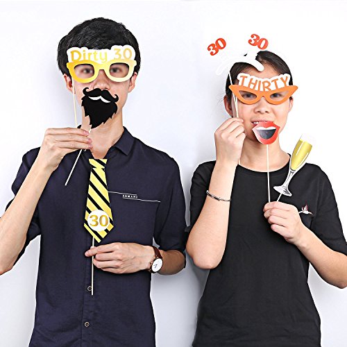 KonSait 52 pz 30 Anni Compleanno Photo Booth Props, DIY Photo Booth Accessori Partito Maschere Foto Props con Stick, 30 Decorazioni di Compleanno Forniture, Facile assemblaggio