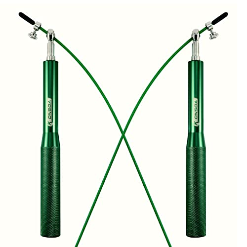 Konsoa Corda per Saltare in Acciaio per Crossfit, Boxe, Rope-Skipping e Salto Normale con Corda - Corda per Saltare Professionale con Cuscinetti a Sfera Veloce - per Uomini e Donne (verde)