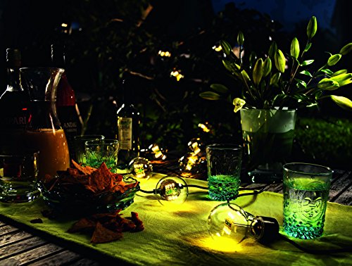 Konstsmide 2378-100 catena LED Biergarten / 80 diodi bianchi caldi / 10 lampadine chiare / trasformatore esterno 24V / cavo chiaro / nero