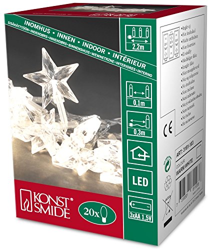 Konstsmide 3181-103 / Catena di luci decorative LED 20 stelle in acrile trasparenti / 20 diodi bianco caldi/a batteria sino a 120h / cavo trasparente