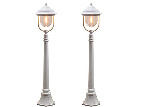 KONSTSMIDE 7225-250 - Set di 2 luci da sentiero PARMA in alluminio, E27, IP43, altezza: 118 cm, colore: Bianco