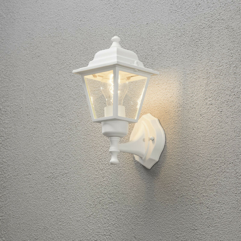 Konstsmide Budget Lampada da esterno a lanterna larga bianco opaco, IP23 | Finitura: bianco | Materiale: alluminio | Grado di protezione IP: IP23 | Altezza: 28,5 cm | Larghezza: 13,7 cm | Profondità: 17,5 cm | Tipo di lampada: E27 | Lampadina inclusa: no