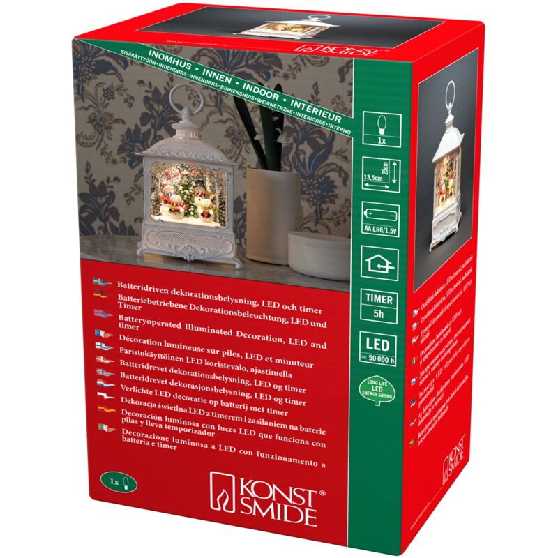 Piccola lanterna ad acqua 4 pupazzi di neve, bianco antico, con interruttore on/off, timer 5 ore, bianco antico, funzionamento a batteria, per interni, 1 diodi a luce bianca calda