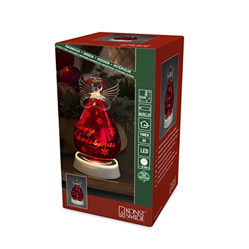 Konstsmide 3391 - 550 LED vetro figura"Angelo, Rosso, Grande/Per Interni (IP20)/Timer/1 diodi bianco caldo/a batteria: 3 X AA 1.5 V (non incluse)