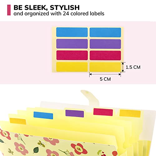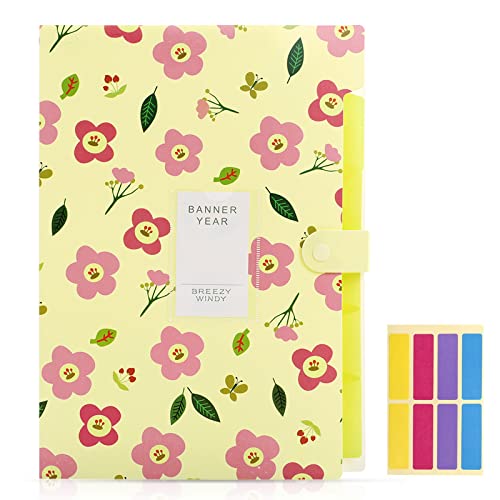 KONVINIT Cartella portadocumenti espandibile formato A4 Portatile Plastica con 5 Tasche Motivo Floreale Organizer per Documenti con Chiusura Tramite Bottone a Scatto,Yellow