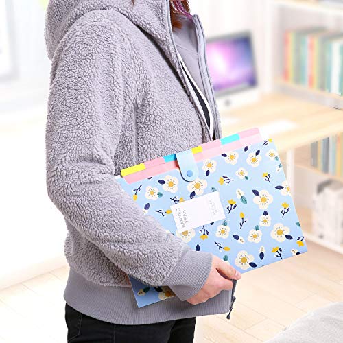KONVINIT Cartella portadocumenti espandibile formato A4 Portatile Plastica con 8 Tasche Motivo Floreale Organizer per Documenti con Chiusura Tramite Bottone a Scatto,Blue