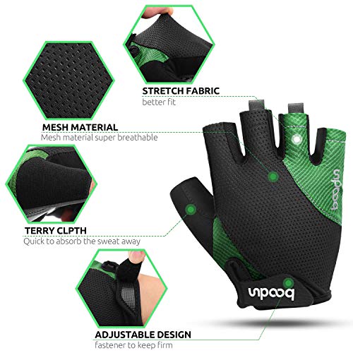 GUANTI DA CICLISMO TRASPIRANTI SENZA DITA: i nostri guanti da bici sono realizzati in tessuto lycra. Questo tessuto potrebbe allontanare il sudore dalla pelle e dalla superficie del tessuto, dove può evaporare