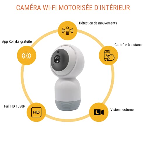 Konyks Camini+, Telecamera WiFi Full HD motorizzata, notifiche, microfono, hp integrati, Infrarosso, automazione facile con l'app Konyks