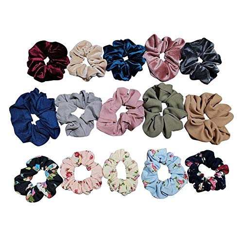 Koojawind 15Pcs Capelli Scrunchies Velluto Chiffon in Cotone Elastico Fasce per Capelli Cravatta Capelli Scrunchy, Elastico Scrunchy Fasce Morbide Capelli Fasce per Capelli Fasce per Capelli
