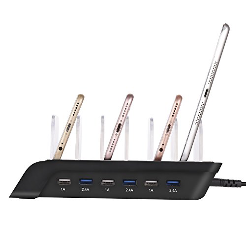 KOOKEN Stazione di Ricarica USB, 10.2A Stazione di Ricarica USB a 6 Ports Rimovibile Tablet Desktop Universale e Smartphone Hub di Ricarica Multi-Dispositivo - Nero