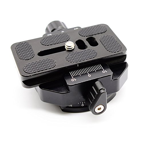 :) Treppiede professionale della macchina fotografica testa panoramica, adotta una tecnica di finitura superficiale e di anodizzazione di alta qualità, solida e durevole La scala per la rotazione orizzontale ha 0-360 °. Base di carico veloce con funzione di bloccaggio antiscivolo.